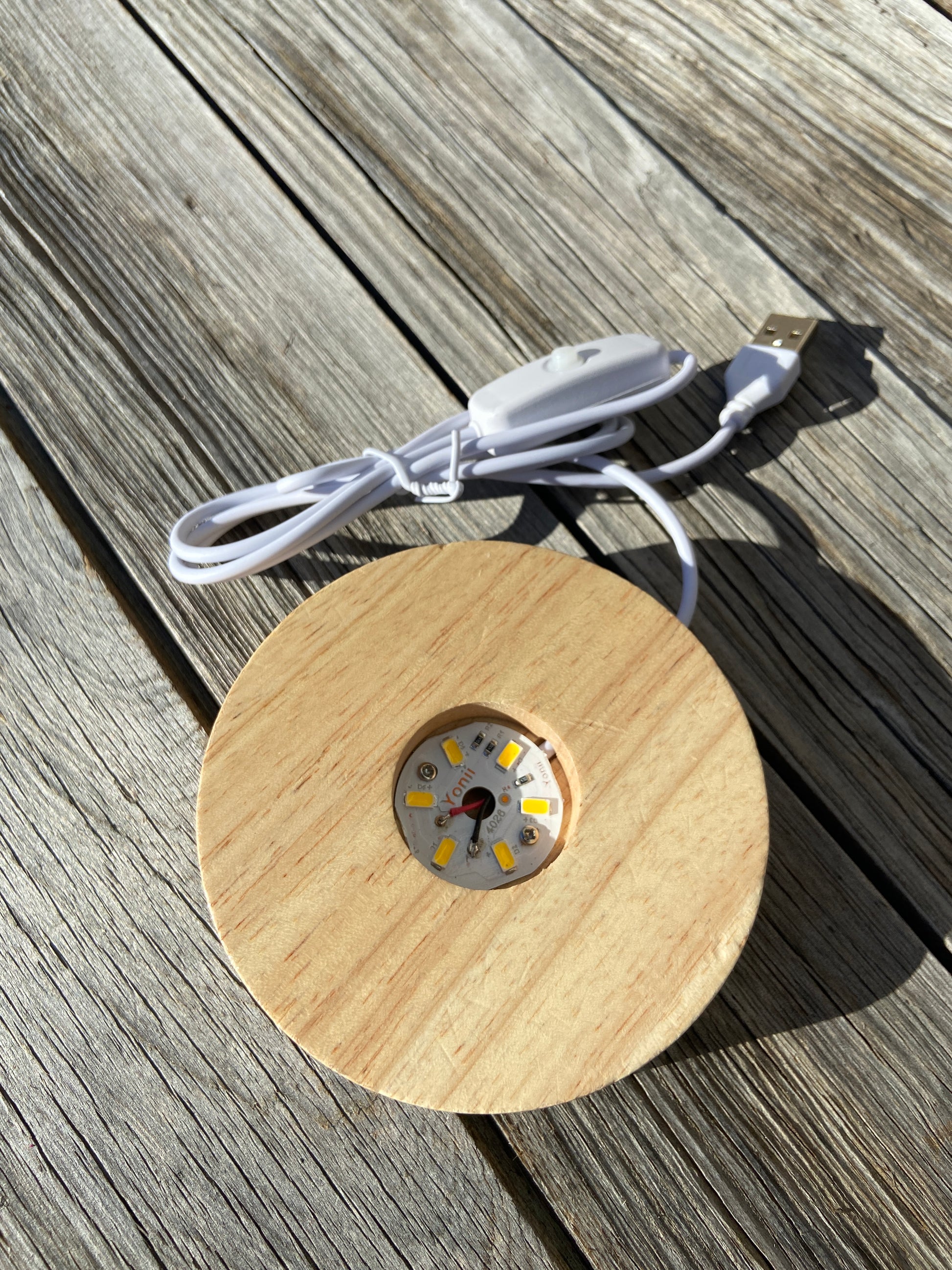 This light box uses LED light to complement our glass pieces. USB connection. Available in square or circle.