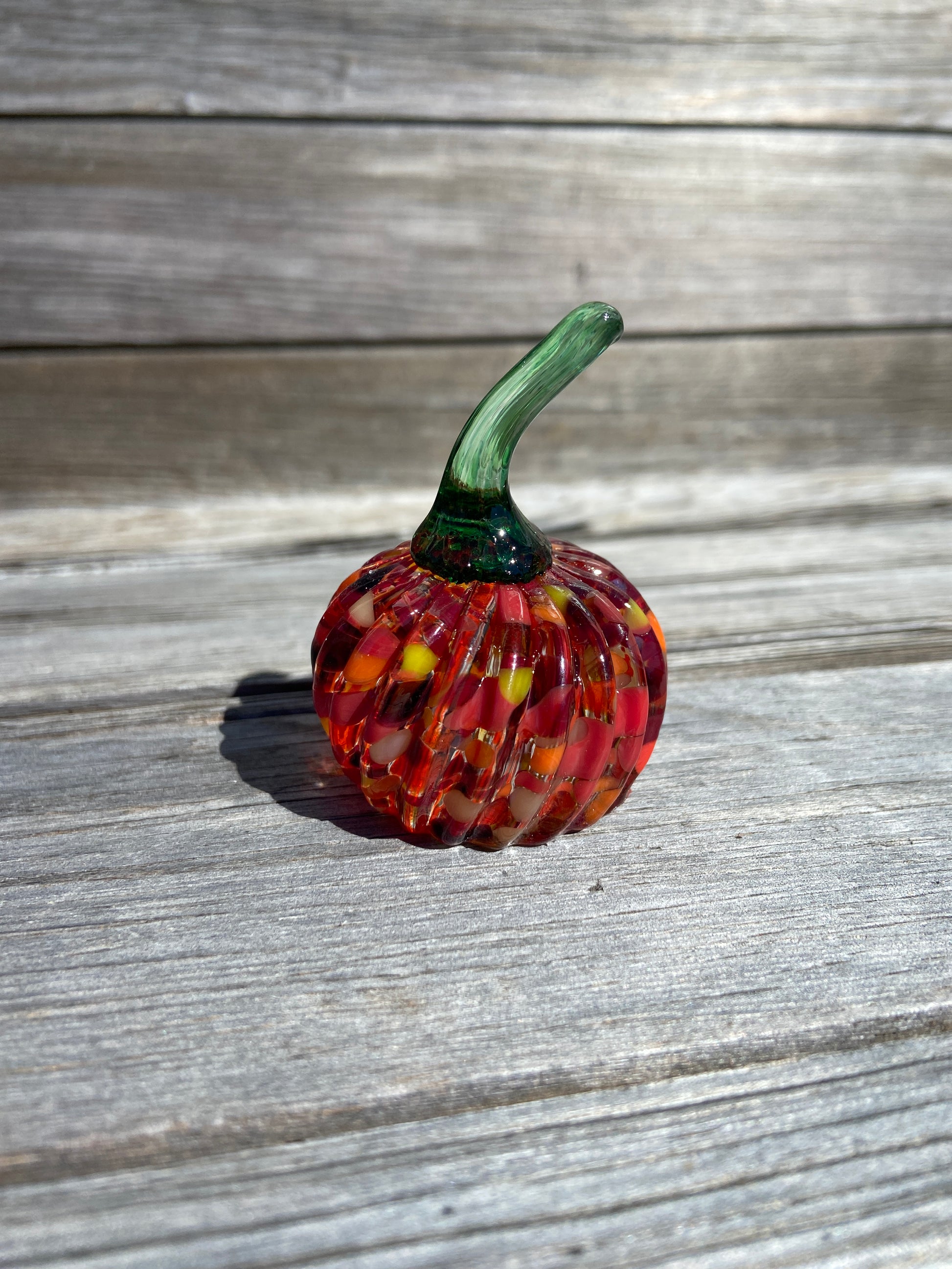 The miniature pumpkin was added to our inventory in 2025. The last photo includes our traditional pumpkin and miniature pumpkin. Dimensions: 2”H x 2”W x 2”D